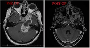 Los pacientes con un tumor de la base del cráneo pueden experimentar síntomas como dolor y entumecimiento facial, dolor de cabeza, obstrucción nasal, dificultad para respirar, pérdida de audición y otros, dependiendo del tipo y tamaño del tumor. Los tumores de la base del cráneo se clasifican por su ubicación o tipo y pueden incluir meningiomas, schwannomas, cordomas y tumores metastásicos que se han diseminado desde otras áreas del cuerpo.